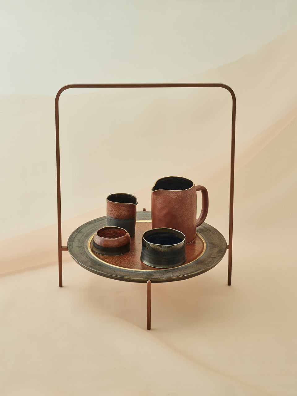 The leading Korean furniture designer Jihoon Ha is famous for his furniture designs with traditional motifs expressed in a modern manner. His works won the “2020 Craft of the Year” award and his collections are featured in the V&A Museum in the U.K., Philadelphia Museum of Art in the U.S., Museum of Applied Art in Germany, National Museum of Modern and Contemporary Art in Korea, and the National Folk Museum of Korea. A table, chair, and various small portable dining ta bles made by Jihoon Ha are featured in GYUBAN’s lounge.